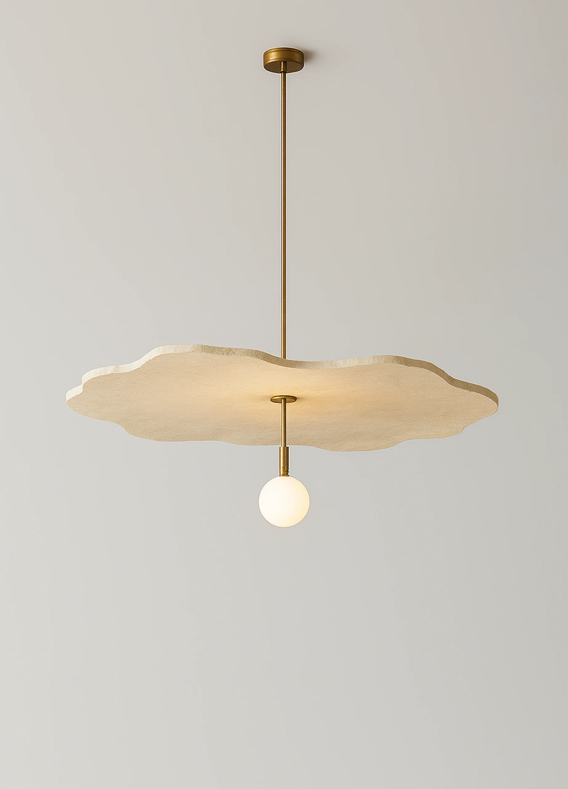 Brass, Hand-finished plaster shade, and Frosted glass globe